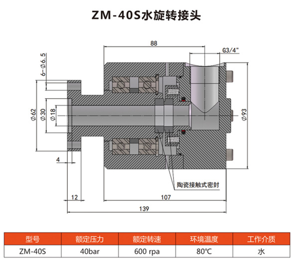 ZM-40S是中心通水單通道的水旋轉(zhuǎn)接頭。采用陶瓷接觸式密封設(shè)計,并配有自動校準(zhǔn)補(bǔ)償系統(tǒng),確保陶瓷表面始終充分接觸,保證無泄漏。所有零部件全部采用304不銹鋼制作,并配有陶瓷軸承,確保更長的使用壽命。