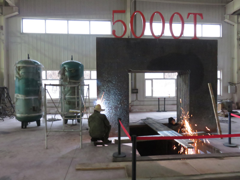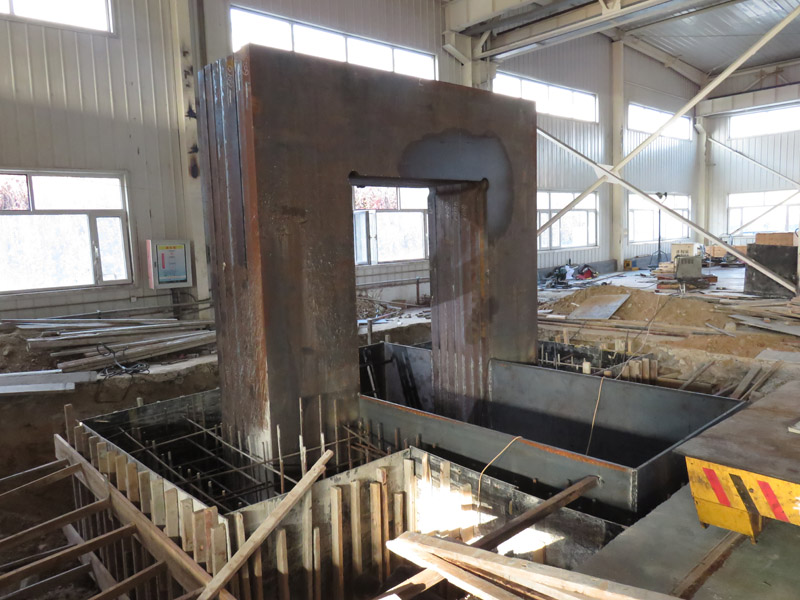 按照計劃,首先要完成土建項目,基礎坑挖完后進行機體混凝土基座的澆筑,然后進行機體的的吊裝拼接,并布置被試液壓缸的進出軌道。在完成7片機架組對拼裝后,進行試驗位置的機坑布置,最后進行混凝土的封裝澆筑,澆筑后恢復原地坪地貌。