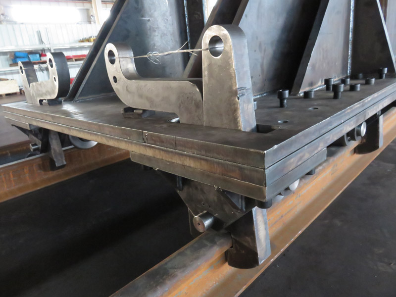 被檢測液壓缸的載具是一組可以在鋼軌上移動的小車