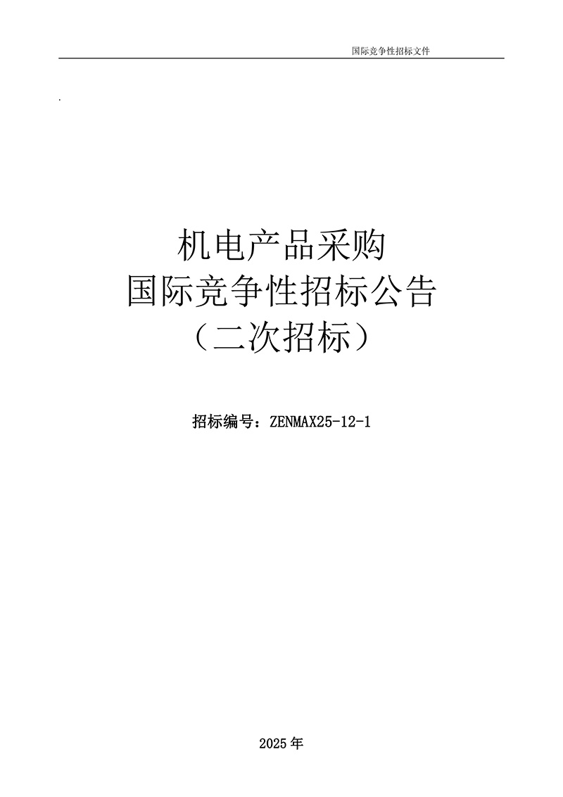 機(jī)電產(chǎn)品采購國際競(jìng)爭(zhēng)性招標(biāo)公告(二次招標(biāo))