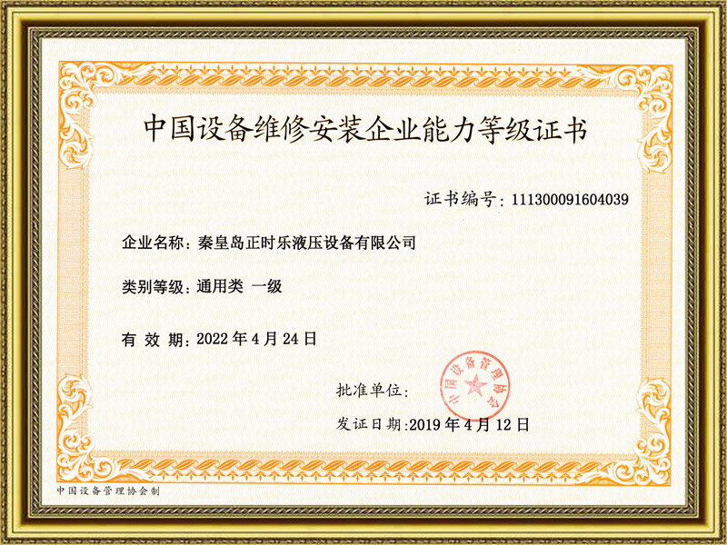設(shè)備維修安裝一級(jí)資質(zhì)